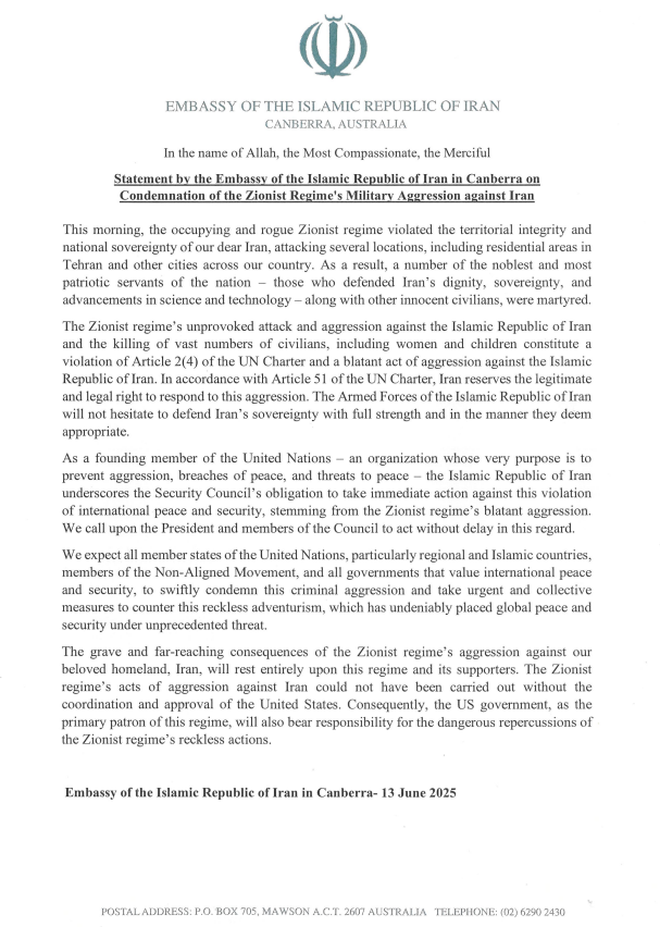 Embassy of the Islamic Republic of Iran in Canberra- 13 June 2025