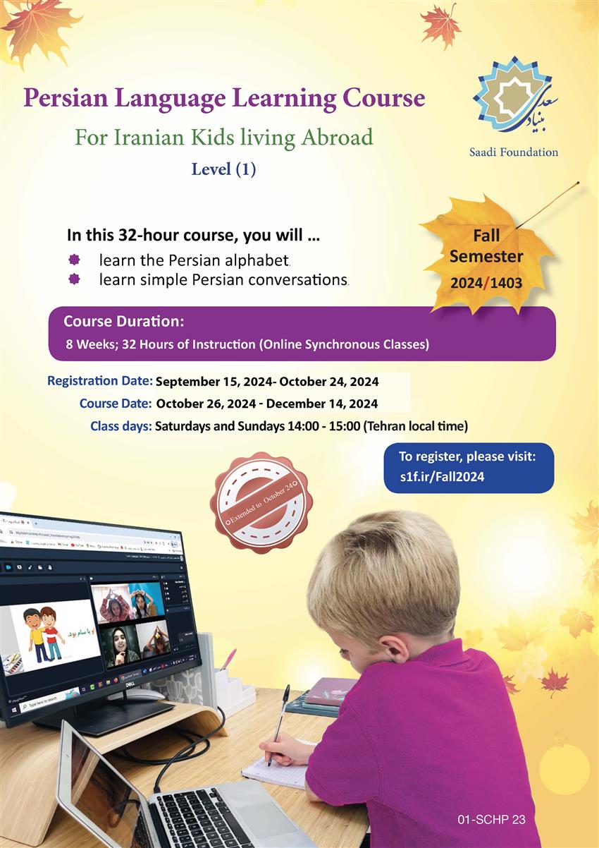 The Saadi Foundation offers new online Persian language course for Iranian children living outside Iran. This Level 1 course scheduled for the Fall Semester of 2024/1403 aims to introduce young learners to the basics of the Persian language.